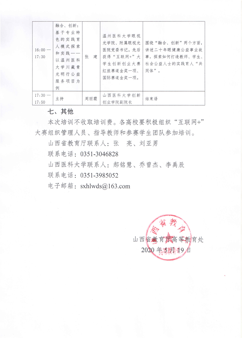 《关于举办山西省第六届“互联网+”大学生创新创业大赛项目线上培训(第一期)的通知》