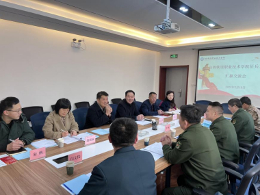 2023年2月15日上午,太原警备区大校副司令员舒畅、太原警备区动员处上校处长温彦、杏花岭区人民武装部上校政治委员郑泽海一行来校调研大学生征兵入伍工作。大学生应征入伍工作座谈会在融智苑第二会议室召开。