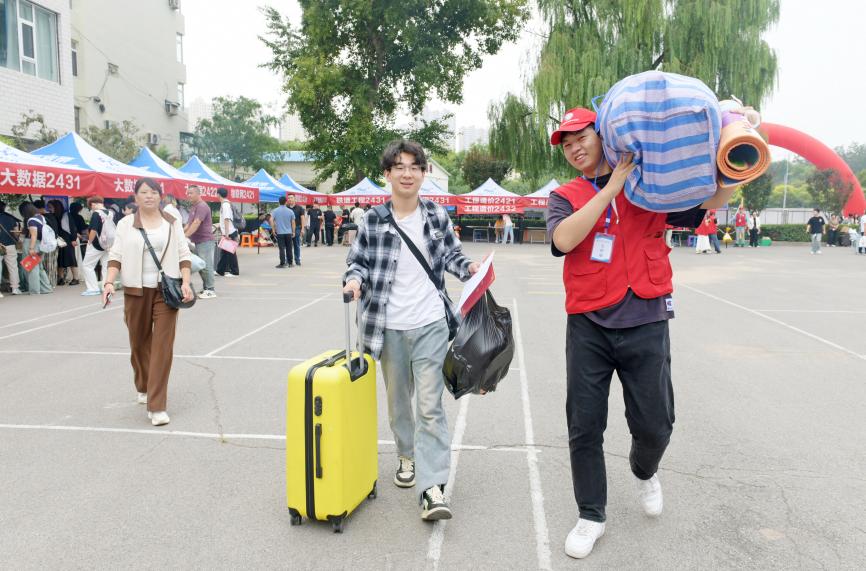 志愿者们细心地引导每一位新生,领新生入门、带新生回“家”,引导新生完成报到办理、物资领取、公寓入住等全部流程。热情的笑脸、亲切的问候、热心的帮助,志愿者们用自己的行动诠释着奉献与友爱,充分彰显了铁院学子的热情。