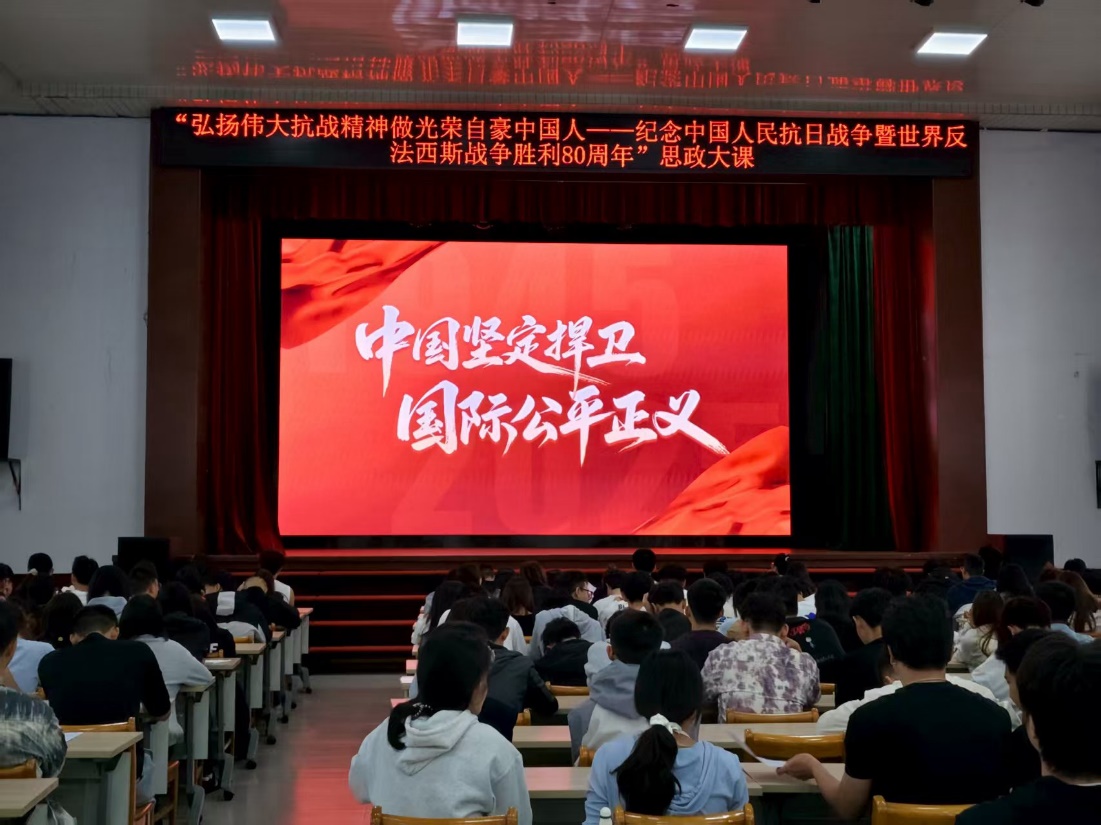 本次思政大课以“弘扬伟大抗战精神 做光荣自豪中国人”为主题,通过权威深入的讲解、珍贵的历史影像资料以及感人至深的英雄事迹,全景式回顾了那段艰苦卓绝的烽火岁月,深刻阐释了中国共产党在抗战中的中流砥柱作用与中国作为东方主战场的世界意义,生动展现了中华民族不畏强暴、英勇抗争的伟大精神和为世界反法西斯战争胜利所作出的不可磨灭的历史贡献。