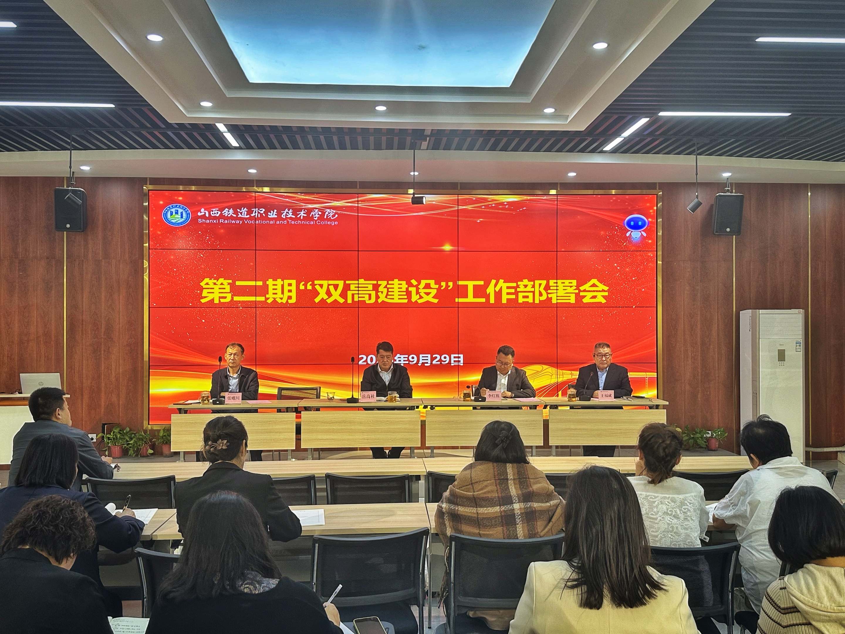 2025 年 9 月 29 日上午,山西铁道职业技术学院在融智苑多功能厅召开第二期“双高建设”工作部署会,为学院下一阶段 “双高计划” 推进谋篇布局、凝心聚力。院领导、各部门与系部负责人及“双高建设”全体工作人员参会,会议由副院长王福成主持。