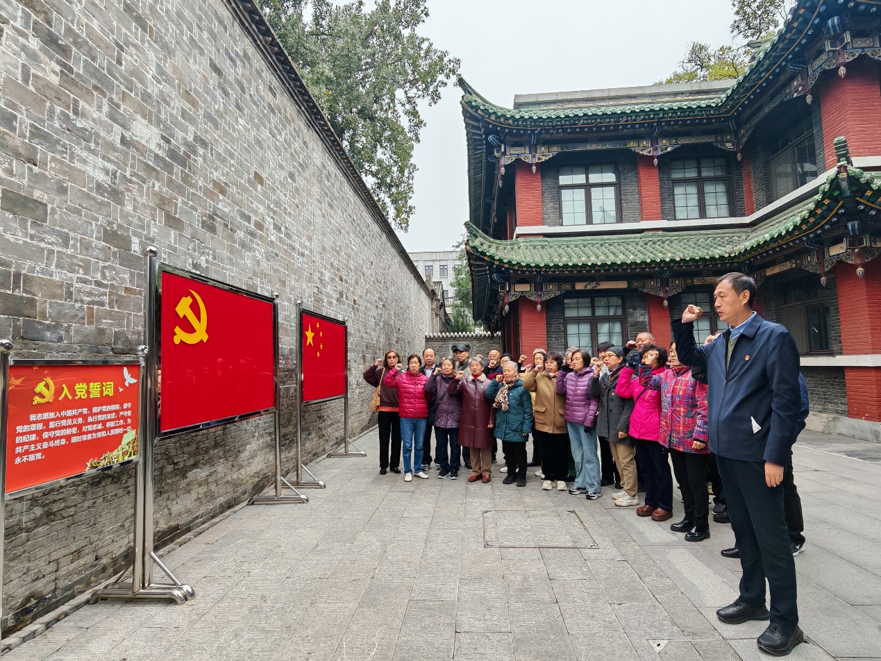 活动第一站来到山西抗战博物馆,作为山西军民浴血奋战的历史见证,馆内陈列的详实文献、珍贵文物与历史影像,将老同志们带回那段烽火连天的岁月。大家沉浸其中,深刻感悟百折不挠、宁死不屈的伟大抗战精神。参观过程中,结合展陈内容,大家现场温习习近平总书记关于党的建设的重要思想,讨论中央八项规定精神学习教育的心得感悟,纷纷表示虽已经离开工作岗位,但党员的身份永不退休,党的优良作风永不褪色,弘扬伟大抗战精神,持之以恒加强党性修养。老同志们在历史的回望中实现理论的升华,进一步筑牢信仰。参观结束后,全体人员移步馆前,面向鲜红党旗,庄严举拳,重温入党誓词。誓言铿锵,初心回响。