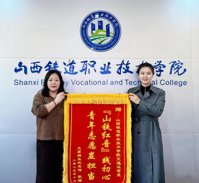 2025年10月31日,太原解放纪念馆特向我院赠送锦旗。锦旗上“山铁红音践初心 青年志愿显担当”十二个金色大字熠熠生辉,这是对交通运营系“山铁红·音”志愿服务队在近期“迎国庆”红色志愿服务活动中的优异表现给予的高度认可。