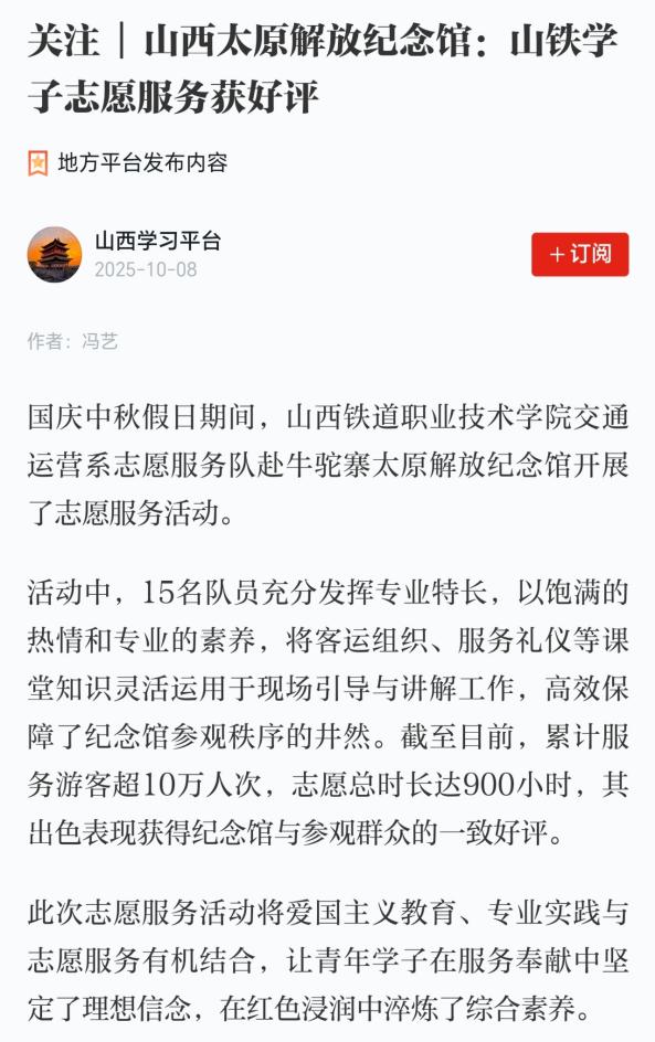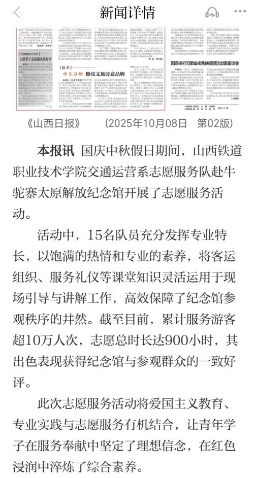 该志愿服务活动还获得学习强国、山西日报宣传报道,将我院的实践经验和育人成效推广至更广范围,进一步扩大了活动的影响力与示范价值。