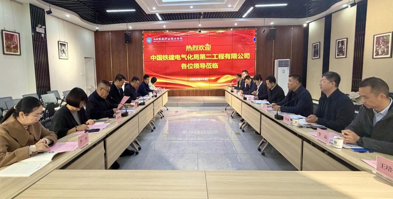 11月7日上午,中国铁建电气化局第二工程有限公司党委书记、执行董事李利军,山西属地执行总经理、项目经理阚飞,党委干部部(人力资源部)经理詹丽娟,运营管理部(算量中心)经理马昊博,安全监督部(应急<救援>中心)经理张小峰,设备分公司经理李晶,党委工作部部员郭丹彤,通信分公司副经理、项目总工程师王培豪,信号分公司副经理杨阿龙一行来到学院进行校企合作交流。学院党委书记岳高社、院长李灯熬、副院长王福成、办公室主任徐贵旭、教务部部长郭雅娟以及相关系部负责人参与了此次交流会,会议由王福成主持,双方就人才培养、师资互聘、订单班签订等领域的深度合作展开了热烈交流。